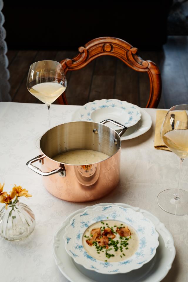 Har du sett en snyggare gryta? Värmen från kopparn och den högblanka ytan ger dukningen ett rejält lyft. Modellen passar perfekt till soppor, grytor eller långkok som du vill servera med elegans.