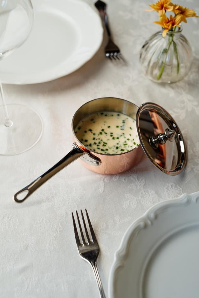 I Maitre D’-serien finns även en något större, men fortfarande nätt kastrull. Den är idealisk till såser eller mindre rätter som du vill servera direkt på bordet – med värme, stil och en hemtrevlig känsla.