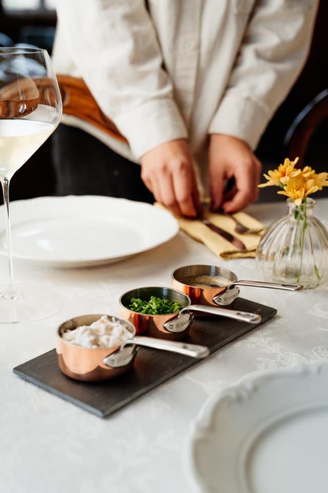 Tre små kastruller – perfekta för smör, såser eller små tillbehör. Kastrullerna kommer med en rustik skifferbricka som lyfter helheten. Med det här setet skapar du en charmig och samtidigt personlig dukning.
