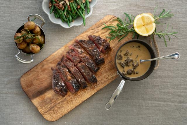 När entrecôte tillagas på rätt sätt blir köttet otroligt mört och smakrikt. Ole Martin serverar sin entrecôte tillsammans med sauterade bönor samt en mustig sås med murklor och peppar, vilket ger rätten både djup och fräschör.