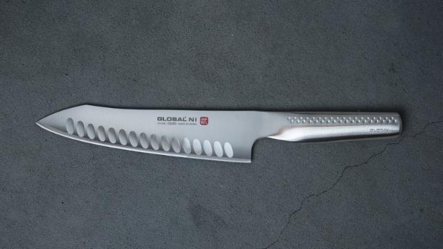 Global Ni är uppstickaren från 2016. Ni-knivarna är, precis som knivarna i Globals klassiska serie, tillverkade i ett lager stål. Knivbladet är något grövre och eggen har fått en extra slipning för bästa möjliga skärpa. Handtaget har också fått ett lyft genom ett förbättrat grepp och en snygg, ljus design.