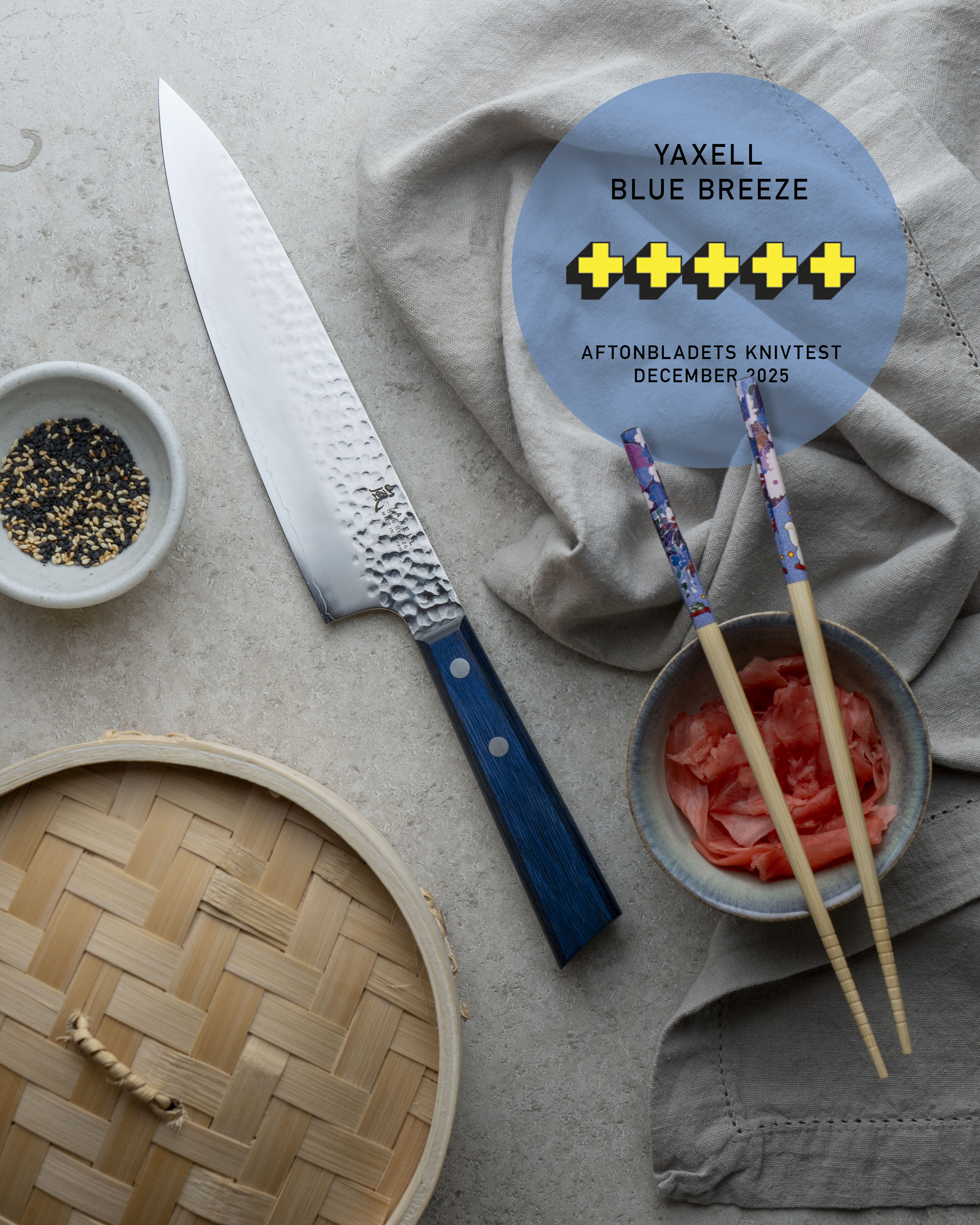 Blue Breeze är Yaxells senaste knivserie. Serien är ett perfekt val för dig som vill påbörja din resa i köket med högkvalitativa knivar, utan att för den skull kompromissa med kvalitet och design. Bladet är tillverkad av Movax-stål, vilket är ett slitstarkt stål som håller sig vasst länge och är enkelt att underhålla. Det är hamrat och slipat i nederkant, vilket ger knivarna en vacker karaktär. Hårdhetsgraden är 58 HRC.