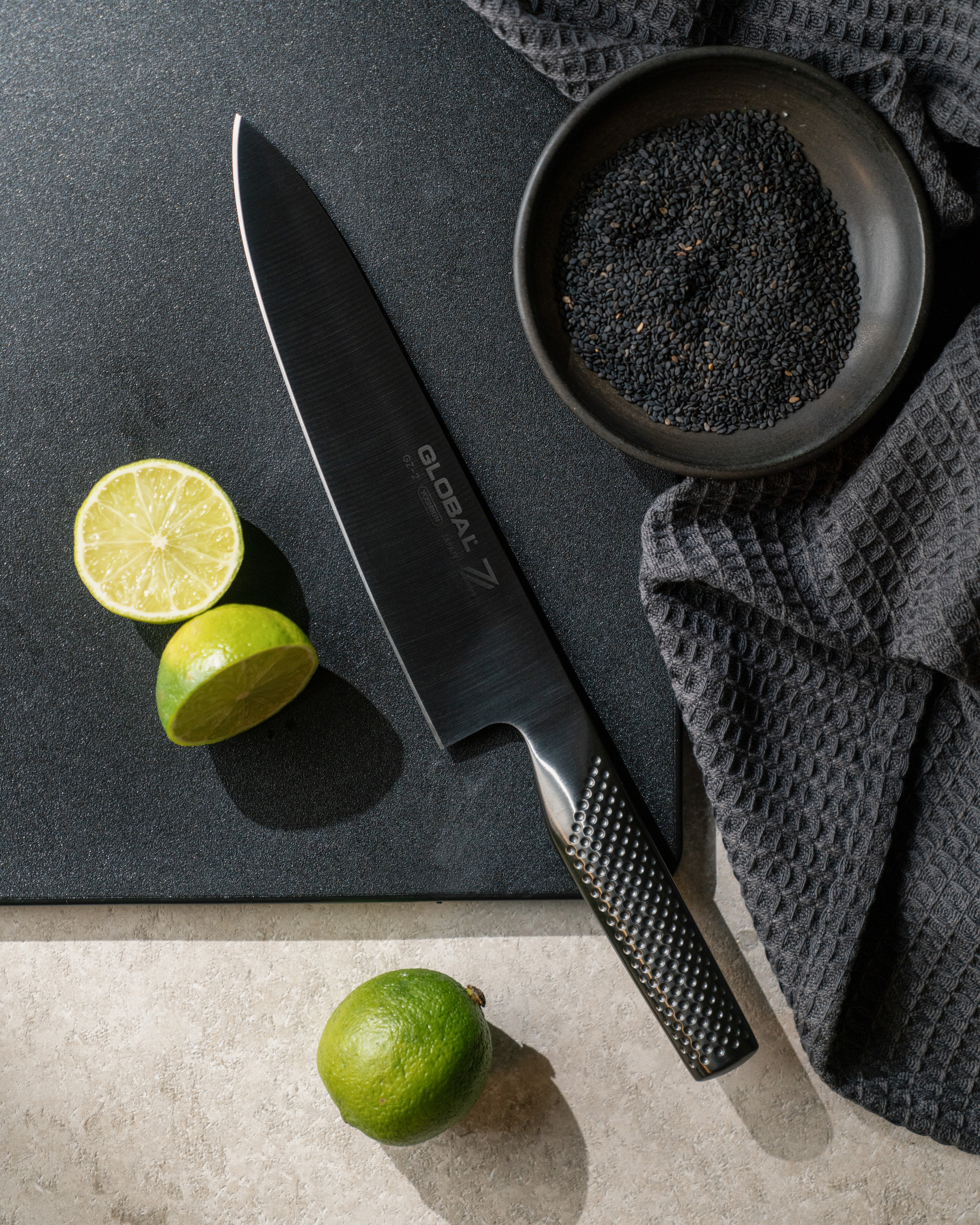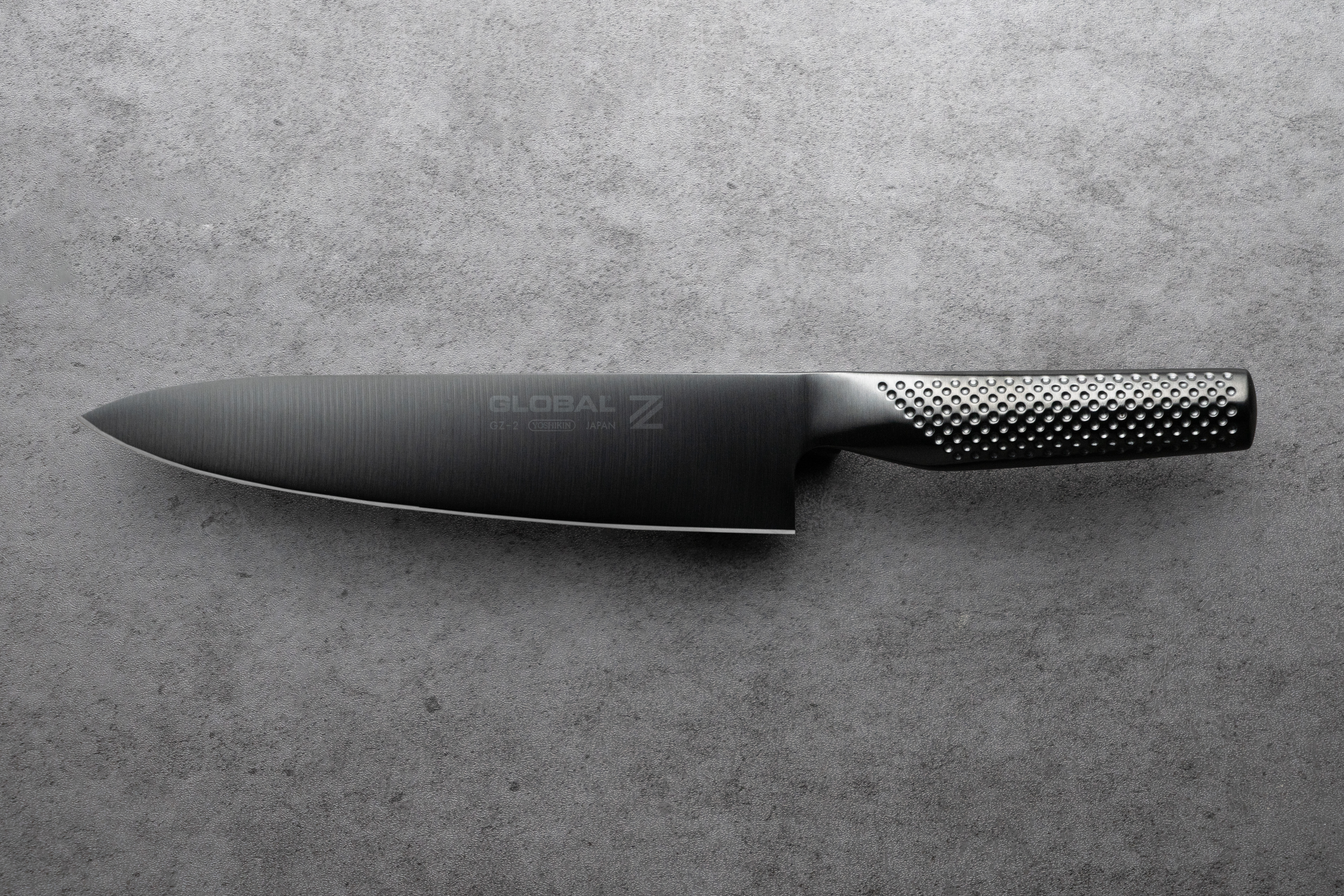 Kockkniven från Global Z är en vidareutveckling av Globals klassiska kockkniv G-2. Skillnaden är att Global Z har en svart DLC-beläggning, vilket inte bara är visuellt snyggt utan även ger kniven en fantastisk prestanda. DLC-behandlingen ökar hårdheten på stålets yta med över 140 procent. Kockkniven är mångsidig och du kan använda den till att skära, hacka och tärna de allra flesta råvaror. Tyngden i knivbladet underlättar när du arbetar med stora köttstycken och rotsaker.