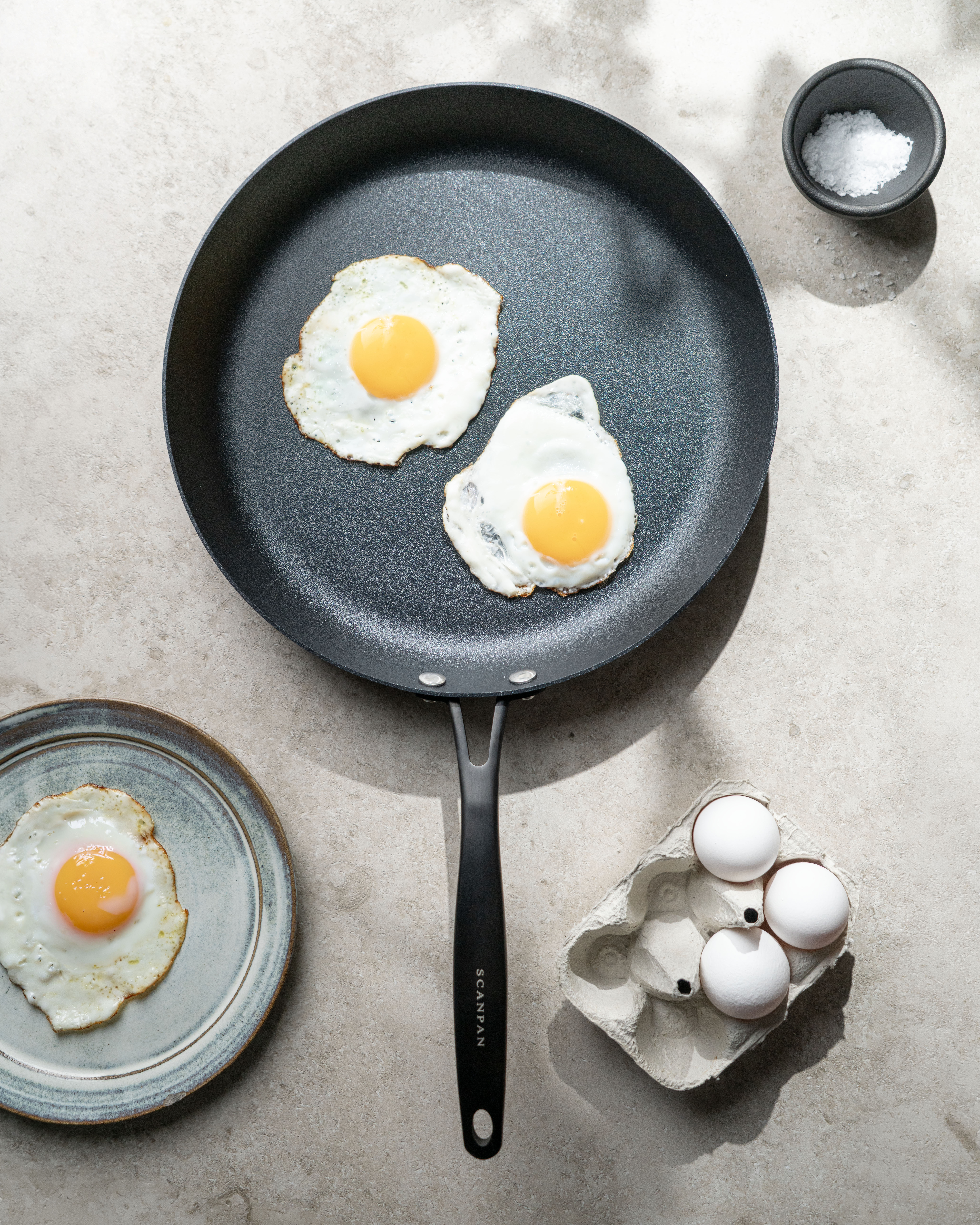 Pro SB+ möjliggör även hållbar matlagning. Du kan använda minimalt med fett i pannan och ändå få ett perfekt stekresultat. Kärlen är lätta att hålla rena, extremt tåliga och har även en stilren design som håller för år av användning. Den svarta utsidan matchas med snyggt handtag i svarteloxerat stål. Serien är ugnssäker upp till 250 grader och fungerar på alla värmekällor, inklusive induktionshäll.